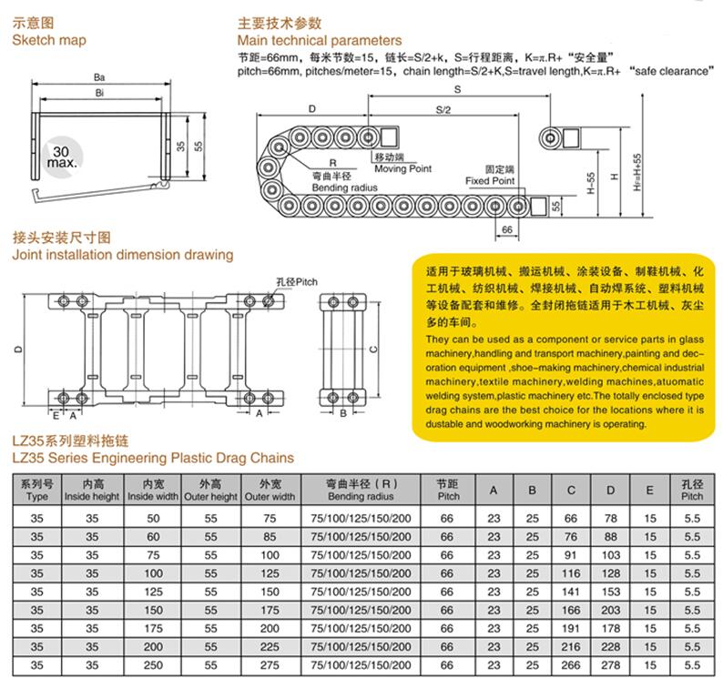 產(chǎn)品名稱:LZ35系列橋式塑料拖鏈