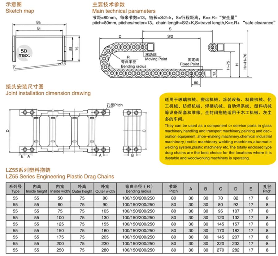 產(chǎn)品名稱:LZ55系列橋式塑料拖鏈