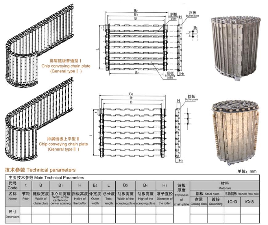 排屑鏈板材料可根據(jù)用戶要求制作,不銹鋼及冷軋鋼板兩種